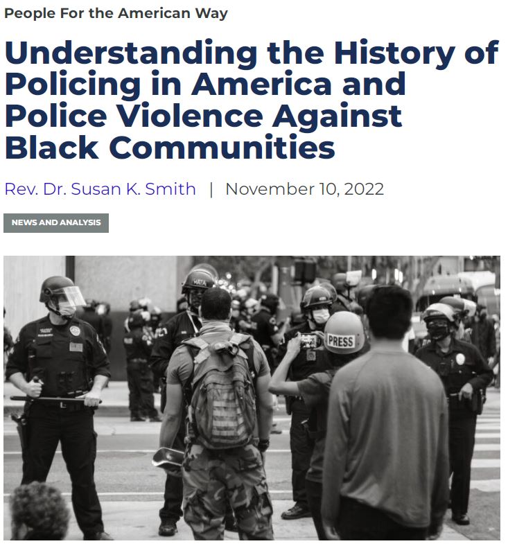 斯史密斯撰写的作品《相识美国警务史和巡警对黑人社区的暴力倡议发展的非营利结构“美国黎民之道”宣告的由苏珊威廉姆》