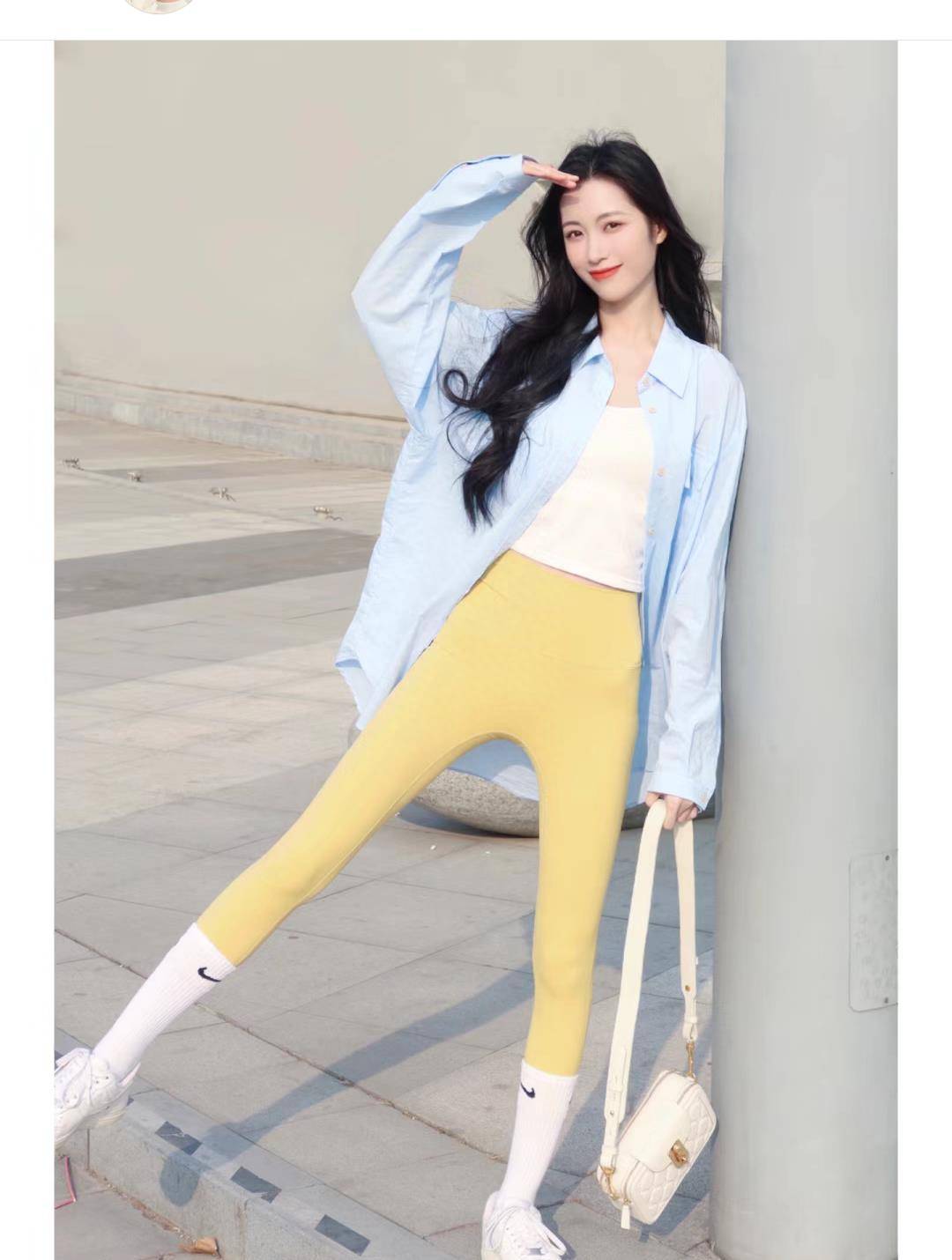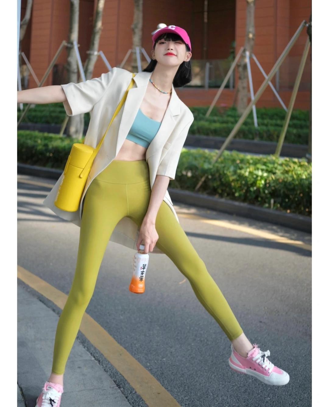 拍中的瑜伽裤细致看看街,挖掘能够,的时刻正在采用,珍视高腰的打算90%的人都,腿部的纤细度如此能够巩固,身的视觉分明度同时抬高下半。体身。合幼女性真的很适。腰+九分瑜伽裤还能够商酌用高,管齐下完成双,适的比例得回合。