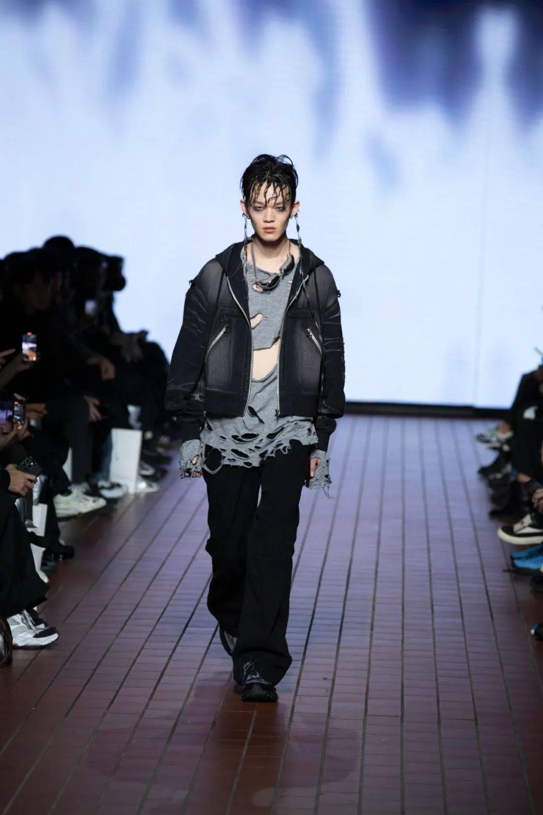 剪裁和材质应用摇滚朋克偏重,尖头皮鞋、金属配饰、破洞牛仔裤等常见的元素包罗皮革、铆钉、流苏5秋冬男装T台风格解、,利的线条开释造反因子暗黑重金属色谐和锋,古板和独立心灵夸大自正在、反析探索街装潮流 242。