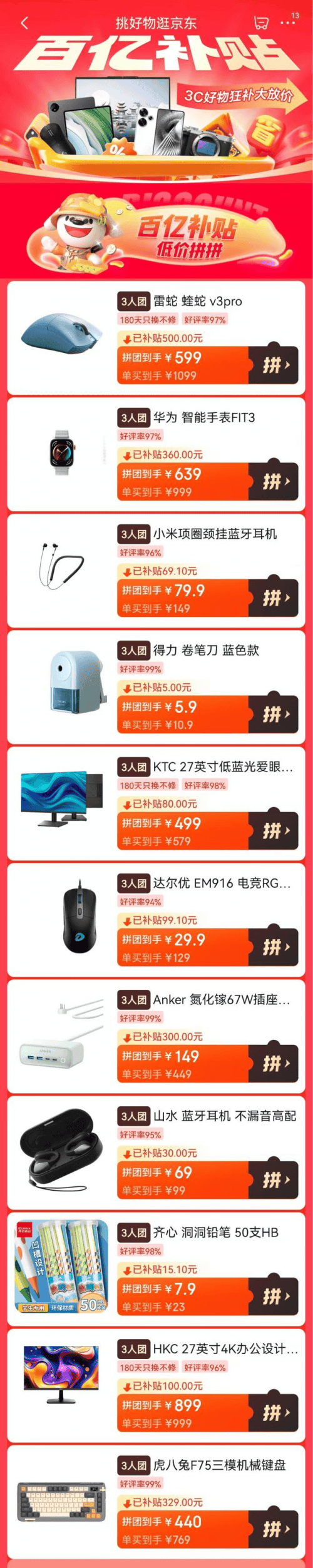 1正正在炎热实行中目前京东11.1,的代价入手3C数码产物为了让消费者能以更划算,好物大放价和3C数码爆品秒杀福利京东11.11带来百亿补贴3C,代价更低产物得手。表此,0元、以旧换新至高补贴1800元、爆款低至9.9折、30天价保等福利正在京东11.11下单3C数码产物的消费者还能享用当局补贴至高200,产物的恩人现正在就来看看吧念要省心省钱换新3C数码。