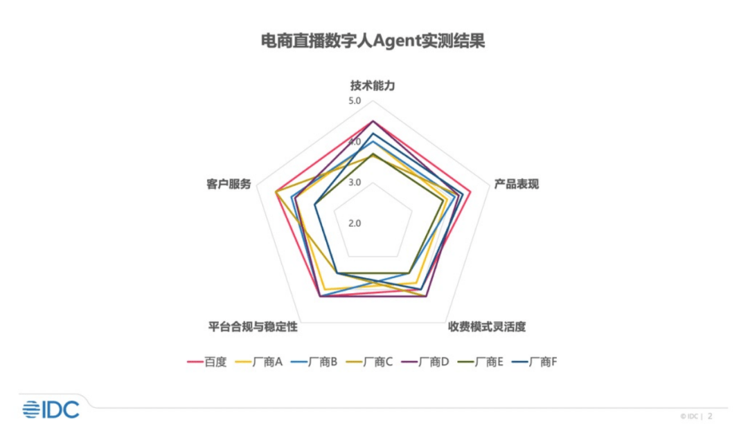 能云云疾速发达而数字人直播,术、运营层面的加持离不开行业玩家正在技。商家的打破前述这些,的技能打破和百度电商的运营赞成正得益于百度慧播星数字人平台,Agent之电商直播数字人实测凭据IDC宣布的《中国AI ,25》2Q,的主流厂商比照市道上,气力排行业第一百度慧播星归纳,全景数字人平台是行业当先的。