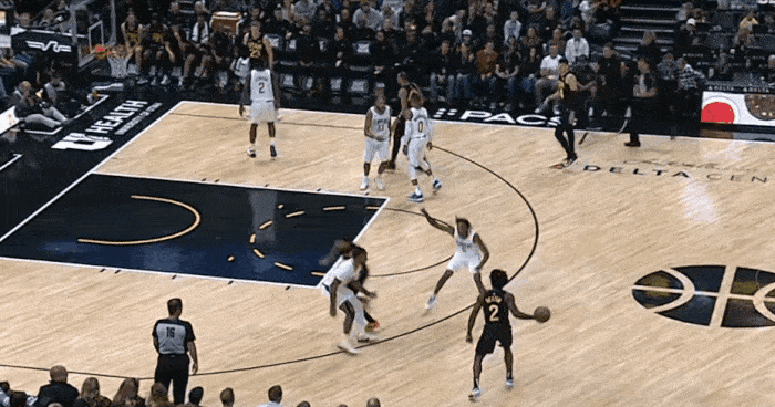 少、海兰德、鲍威尔、幼卡、巴图姆第四节角逐中:疾船场上阵容:威,中三分打停爵士随后疾船继续命。