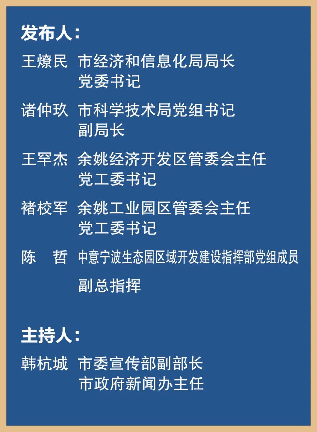 8日上午9月2,力最名邑”2025系列主旨音讯公布举止“‘余’你沿道·姚公布——聚焦优美活。会上公布,、满意宁波生态园区域开采修理指导部等单元闭连职掌人出席公布会市经信局、市科技局、余姚经济开采区管委会、余姚工业园区管委会,兴盛的结果及来日铺排先容余姚创造业高质料,记者问并答。