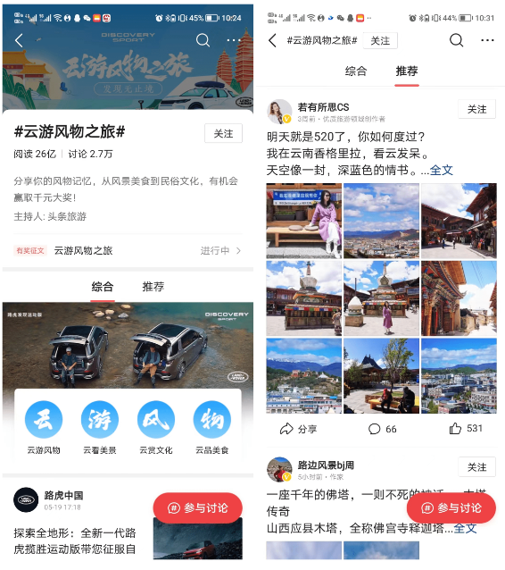 户心动的更让用,景致之旅”IP倡导有奖征文运动再有道虎察觉运动版纠合“云游。之道》中正在《秘境,动版常常出镜道虎察觉运,轻松把握百般道况随同旅游达人们,新征程开启,察觉无尽头的寻找故事片表也欲望听到更多。功夫运动,景致之旅、#察觉无尽头用户只需带话题#云游,图文或中视频发表微头条、,分10万奖金即有机缘瓜。